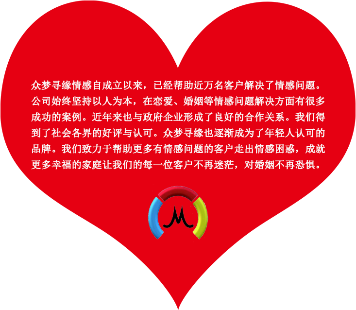 眾夢(mèng)尋緣婚姻服務(wù)有限公司是一家以婚戀、情感咨詢等交友服務(wù)為一體的綜合性情感服務(wù)機(jī)構(gòu)。公司成立于2017年,坐落于美麗的海濱城市黃驊。